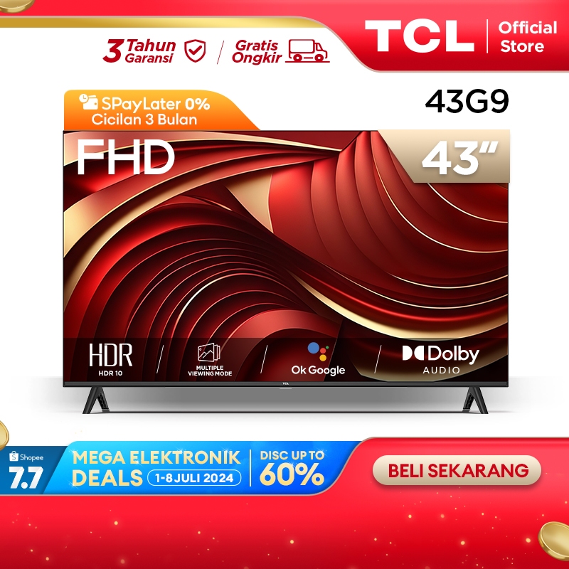 [FLASH SALE] TCL 43 Inch Google TV - FHD - Dolby Audio - Google Play/Netflix/Youtube - Wifi/Bluetooth/USB + Free Vidio 12 Bulan* tanpa set top box (Model: 43G9)