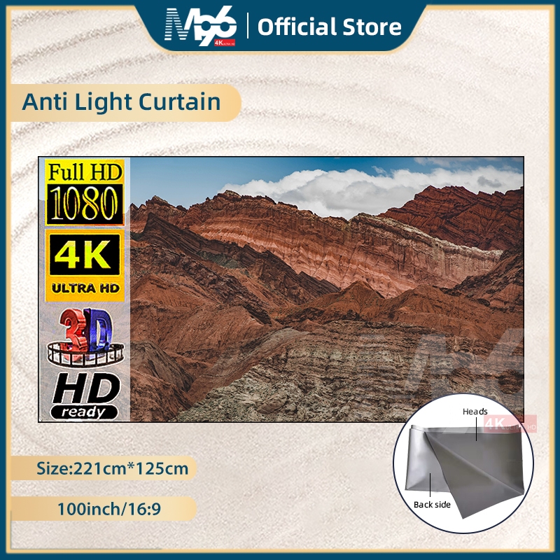 Alasan kenapa harus beli M96 Layar Proyektor 100 Inch Screen Curtain Abu Abu 2.2m*1.2m Projector Anti Light Curtain sekarang