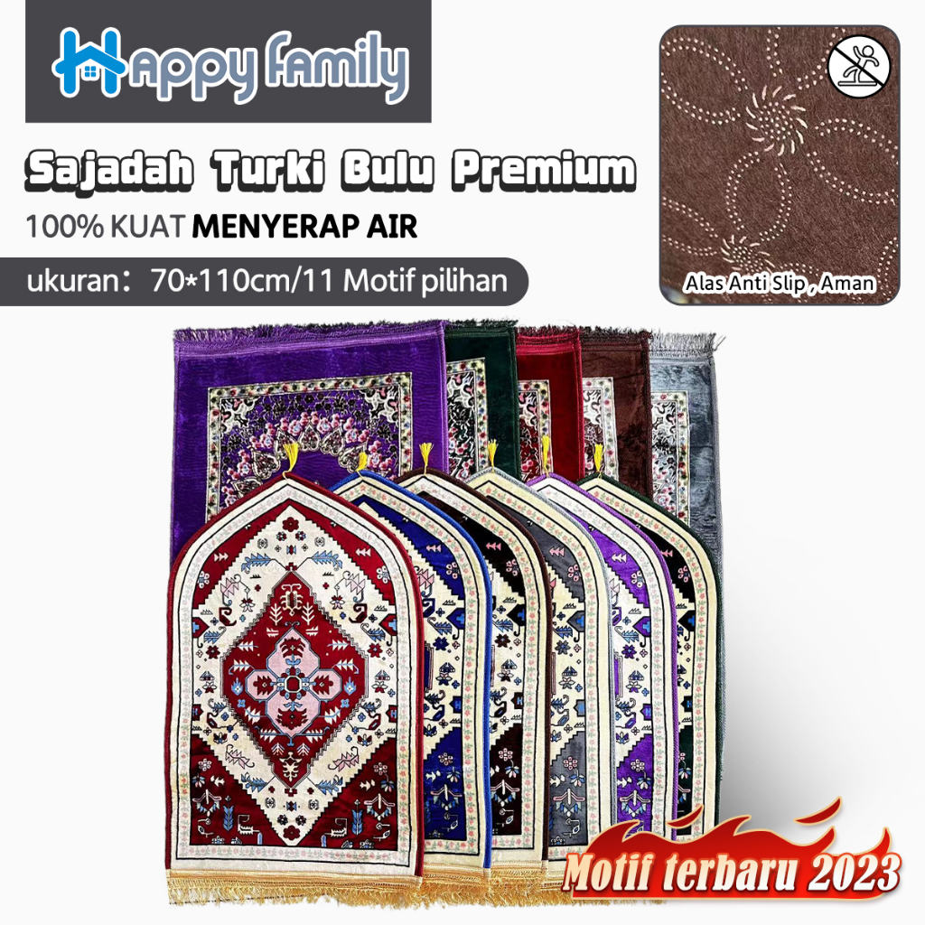Happy Family Sajadah Turki Anti Slip Super Premium UK 70*110cm / Sajadah Sholat Bulu Motif Premium Import