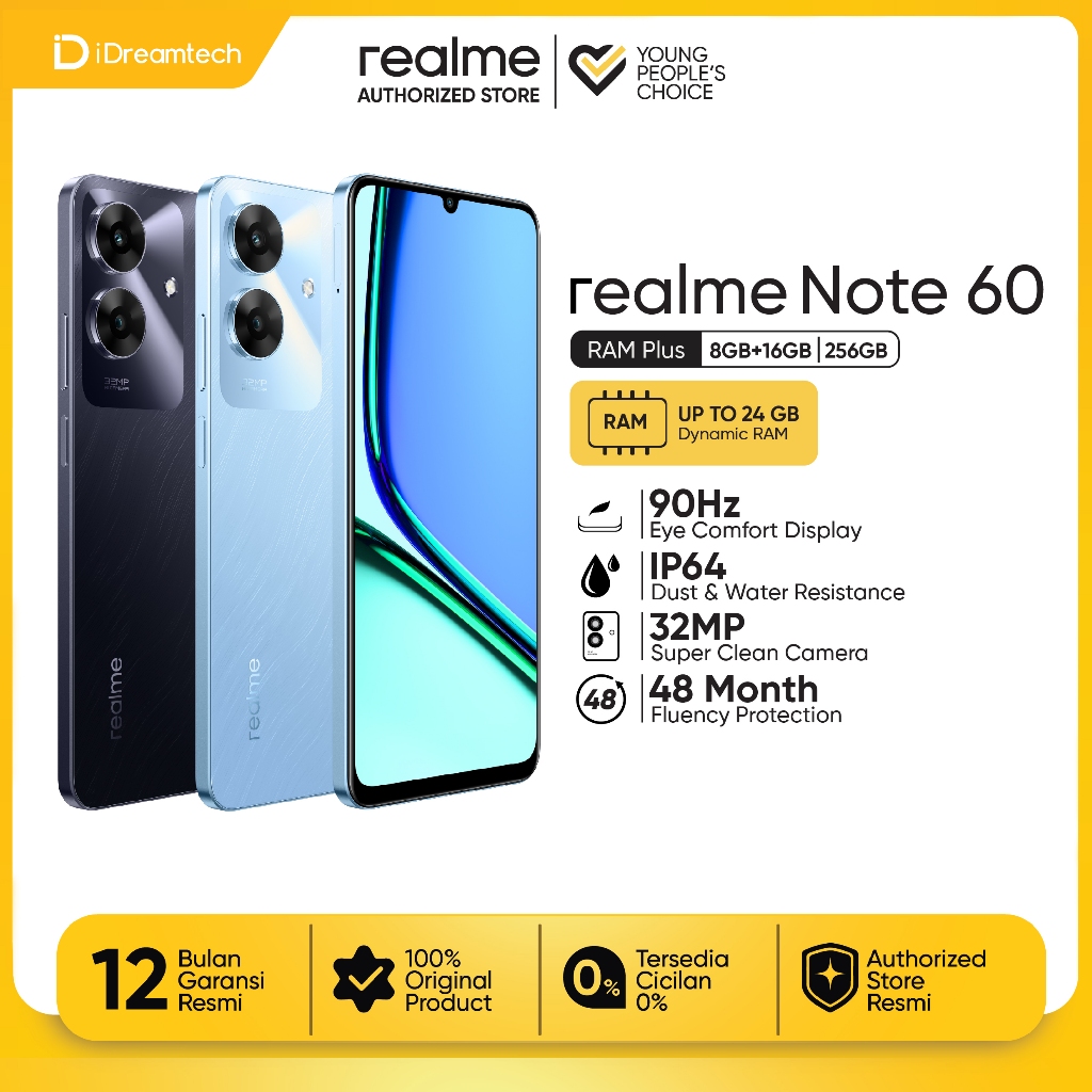 Produk realme Note 60 8GB+16GB*|256GB (ArmorShell™ Protection | TÜV Rheinland | 32MP Camera| 48-month Fluency | IP64 Dust & Water Resistant ini harganya adalah Rp. 1.749.000,00 dan saat ini sedang Diskon -13%, Produk ini sendiri saat saya tulis Artikel ini sudah dilihat sebanyak kali dan sudah disukai sebanyak 473 kali.