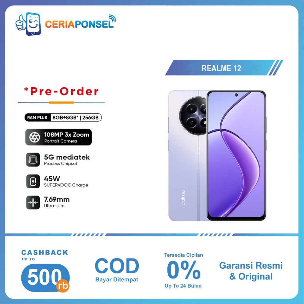 Realme 12 5G 8GB+8GB*|256GB 108MP Camera 6.72 FHD+ LCD Garansi Resmi