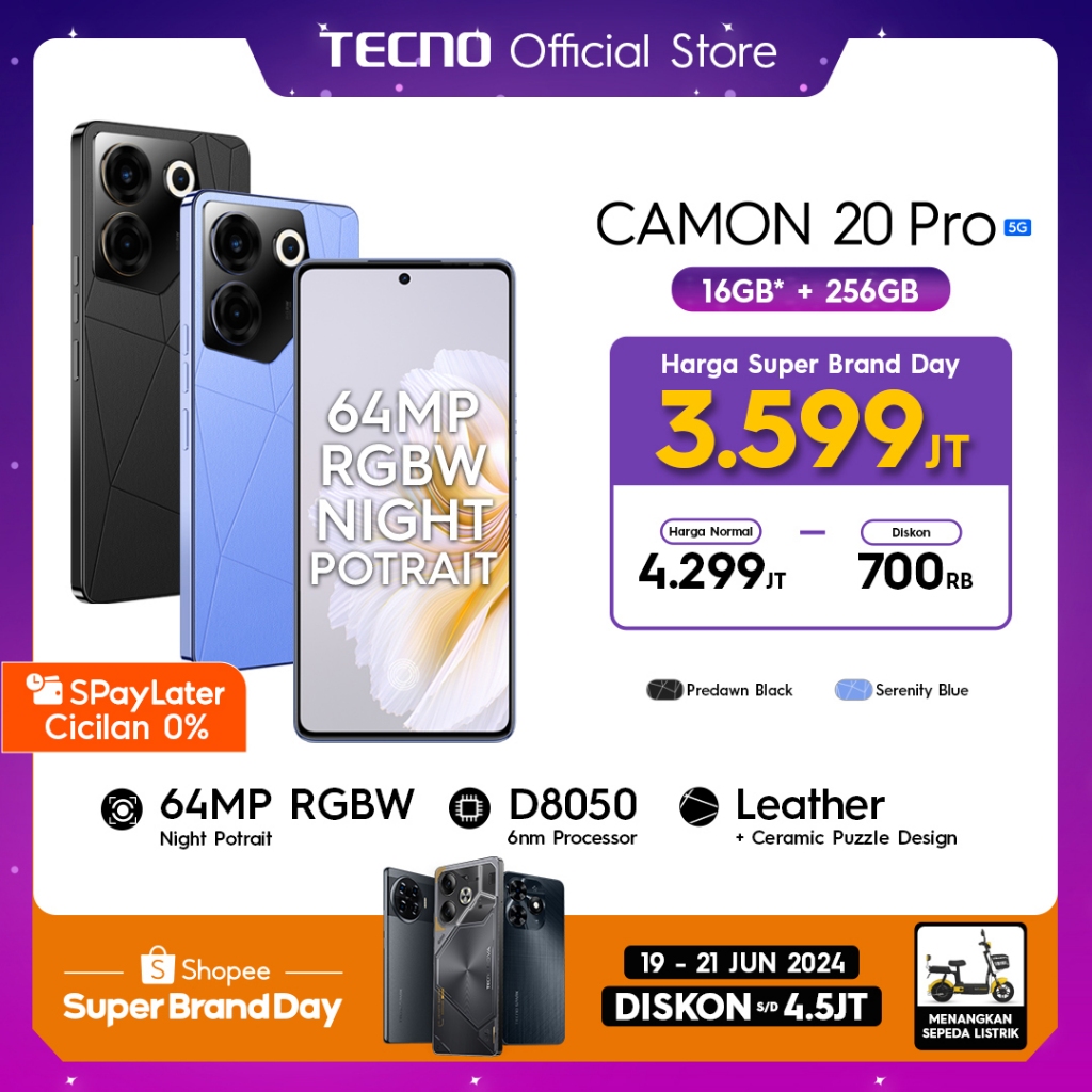 Kelebihan - Kelebihan membeli TECNO CAMON 20 Pro 5G – 64MP+RGBW, 32MP AI Shining Selfie, MTK D8050 5G / Helio G99, 8+8GB*+256GB, 5000mAh + 33watt, Android 13, Garansi 12+1 Bulan di Toko ini