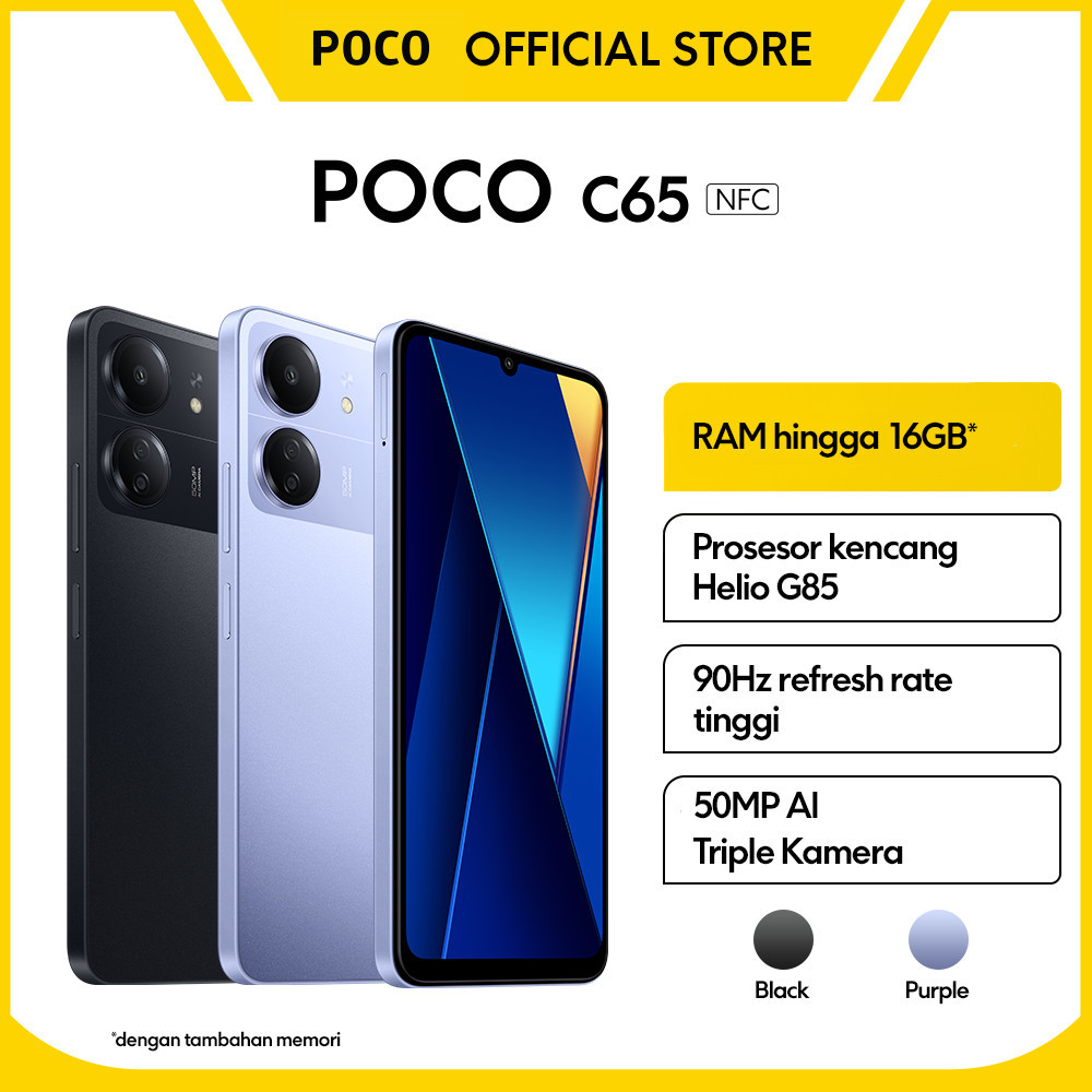 Official POCO C65 | RAM hingga 16 GB* Prosesor kencang Helio G85 90Hz refresh rate tinggi 50 MP AI Triple kamera