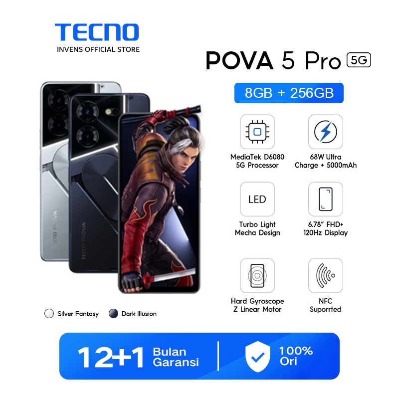 TECNO POVA 5 Pro 5G – Dimensity 6080 5G, 8+8GB*+256GB, 68W Super Fast Charging