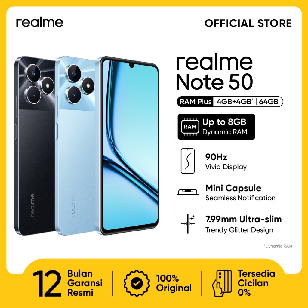 Produk realme Note 50 4GB+4GB*|64GB (90Hz Vivid Display | Mini Capsule | Ultra SLim Body | 13 MP AI Camera | 5000mAh Battery):Sky Blue,4/64 GB ini harganya adalah Rp. 1.349.000,00 dan saat ini sedang Diskon , Produk ini sendiri saat saya tulis Artikel ini sudah dilihat sebanyak kali dan sudah disukai sebanyak 5207 kali.
