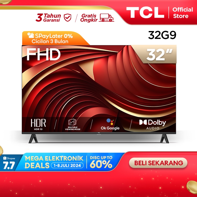 TCL 32 Inch Google TV - FHD - Dolby Audio - Google Play/Netflix/Youtube - Wifi/Bluetooth/USB + Free Vidio 12 Bulan* tanpa set top box (Model: 32G9)